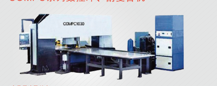 COMPC系列數控沖、割復合機 詳細介紹 產品用途及特點COMPC系列型數控沖割復合機是我公司設計制造一種高效、高精度的板材自動加工設備。板材送進、模具的選擇、切割沖壓過程的實現以及故障報警等均能通過數控系統控制自動完成。采用精密絲杠和直線導軌送進,精度高、速度快、壽命長、噪音低等特點。系統功能齊全,操作簡單,配套的交流數字伺服電機與驅動裝置動態性能好,大臺面送進工作臺,非常方便上下料、換模。